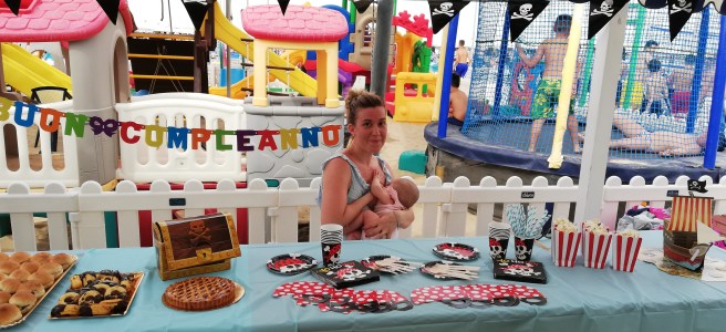 Di temi che n’erano un’infinità ma facendo la festa al mare ed avendo già tra i giochi dello stabilimento balneare una nave dei pirati non potevo che scegliere il tema: FESTA DEI PIRATI!