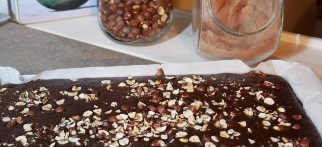 Versiamo in una teglia con carta da forno e decoriamo con 100 g frutta secca sminuzzata (nocciole, mandorle…)