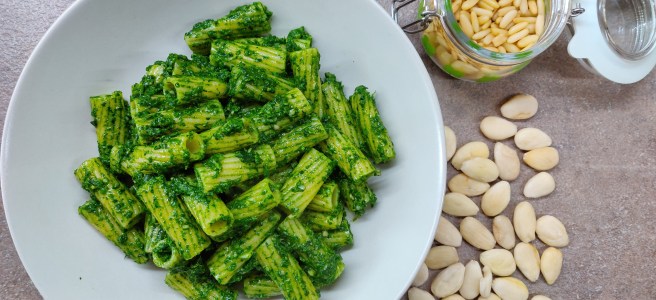 Scolare la pasta, amalgamare con il pesto e gustare!