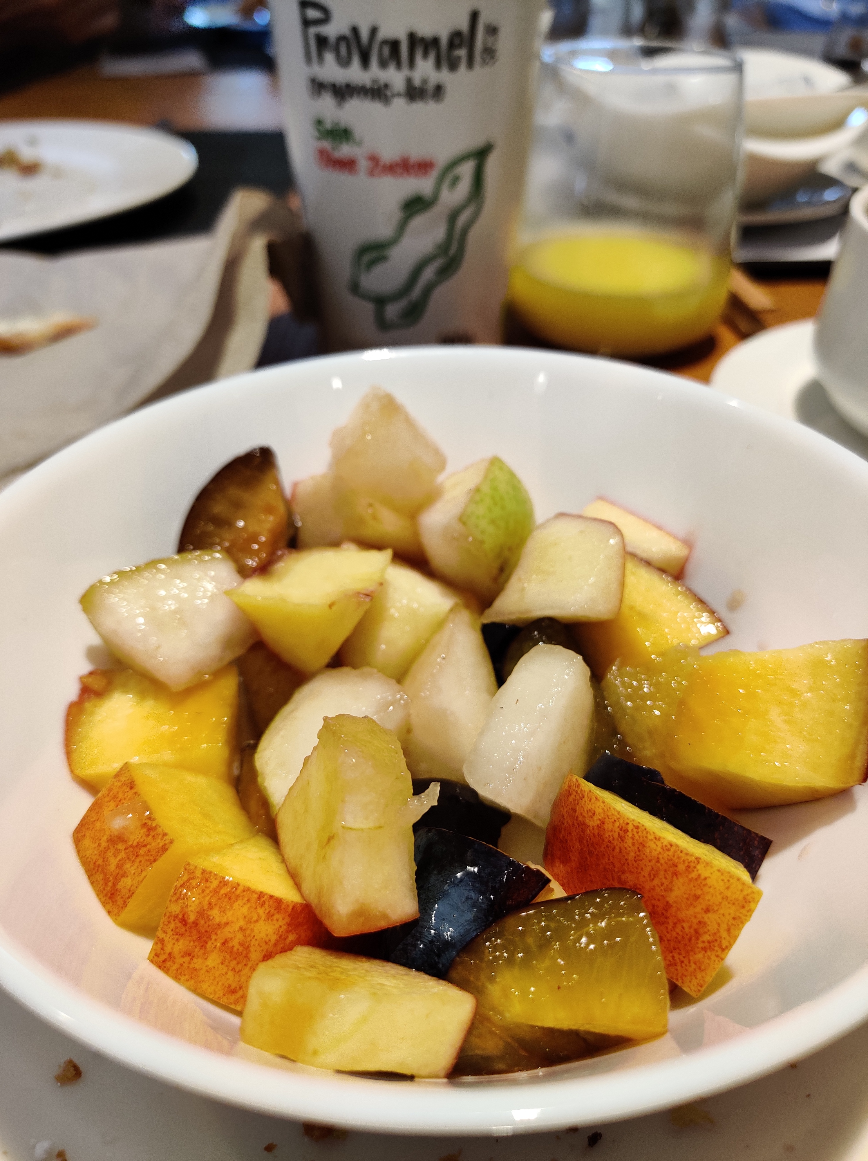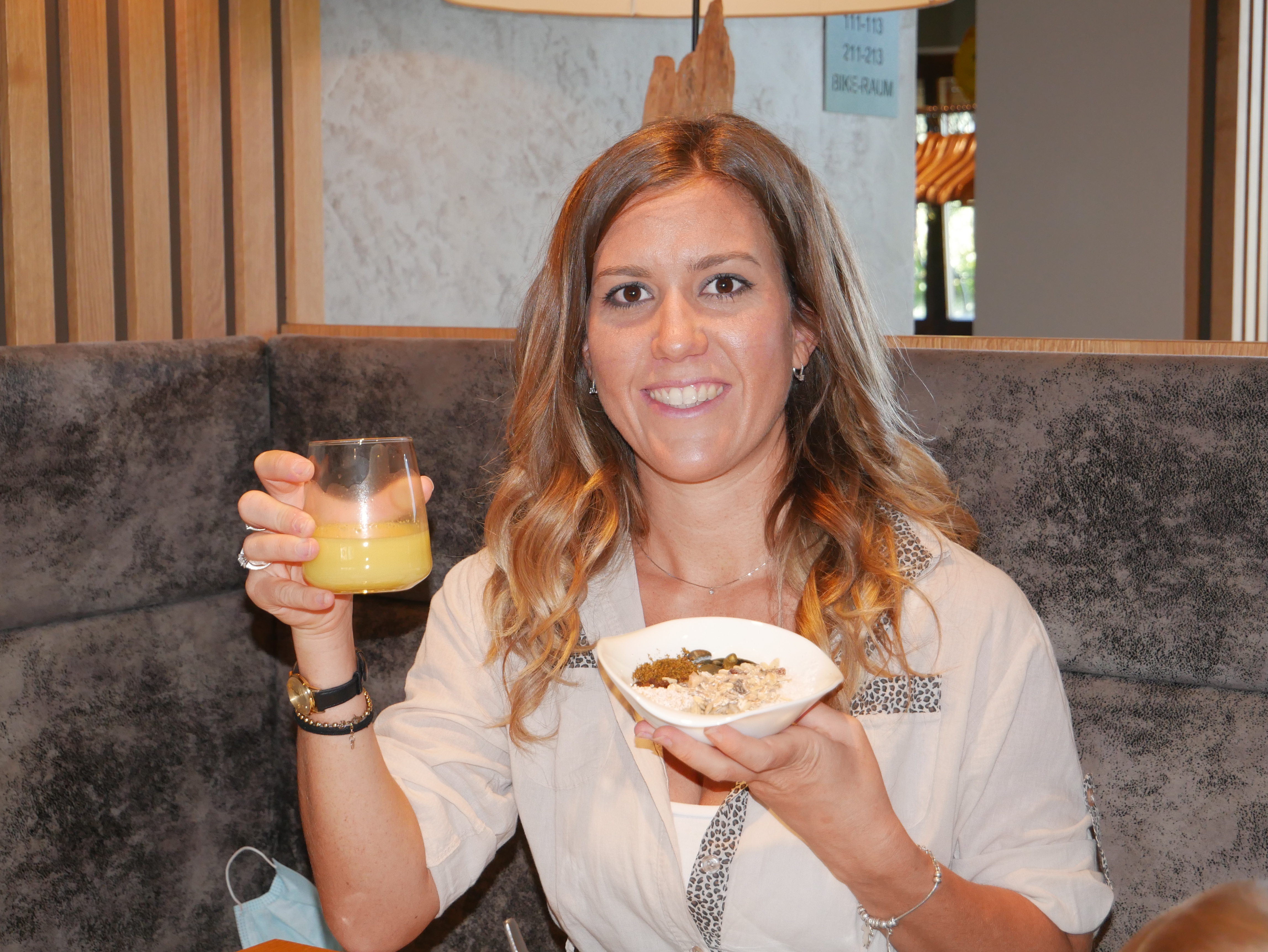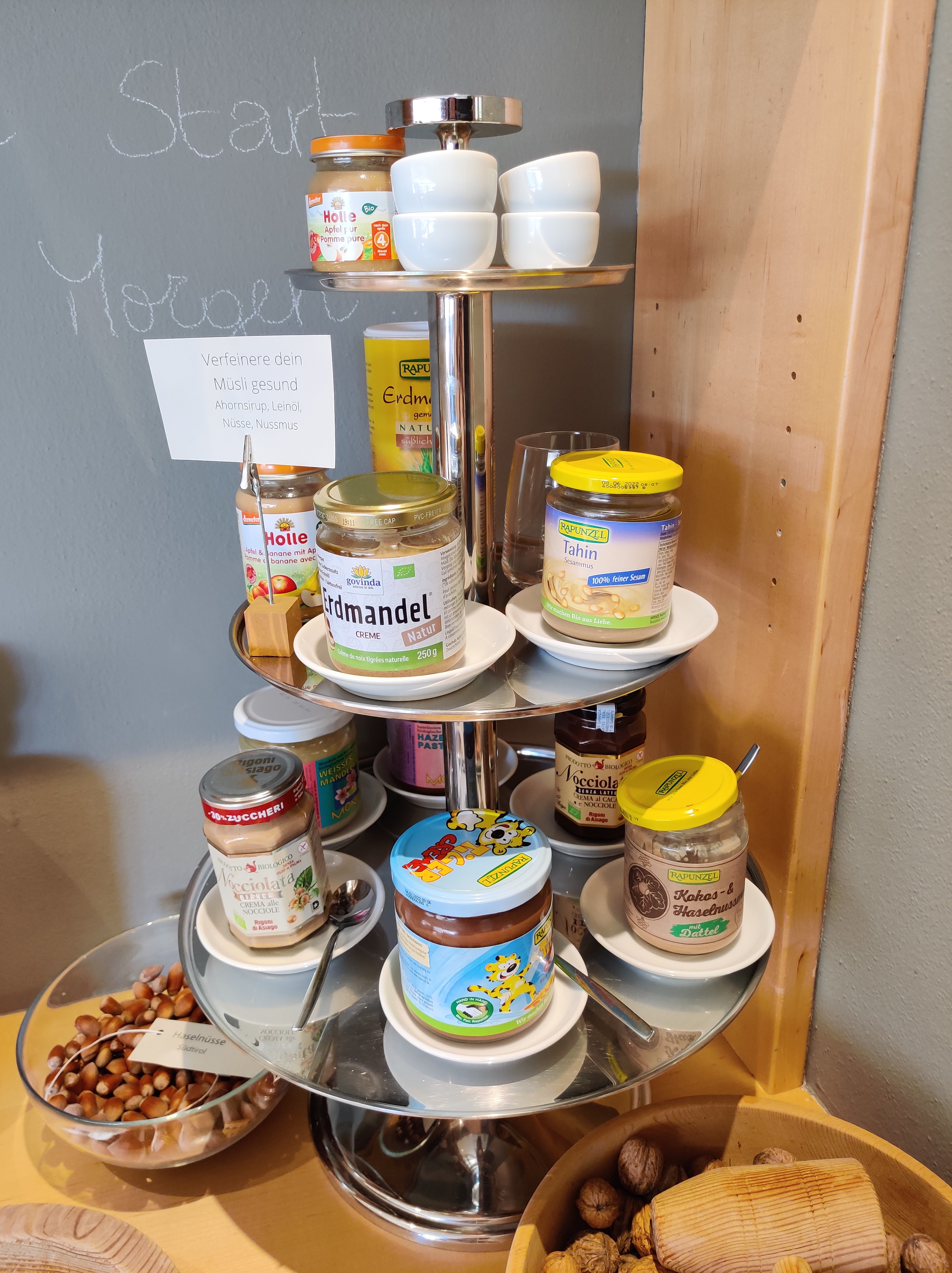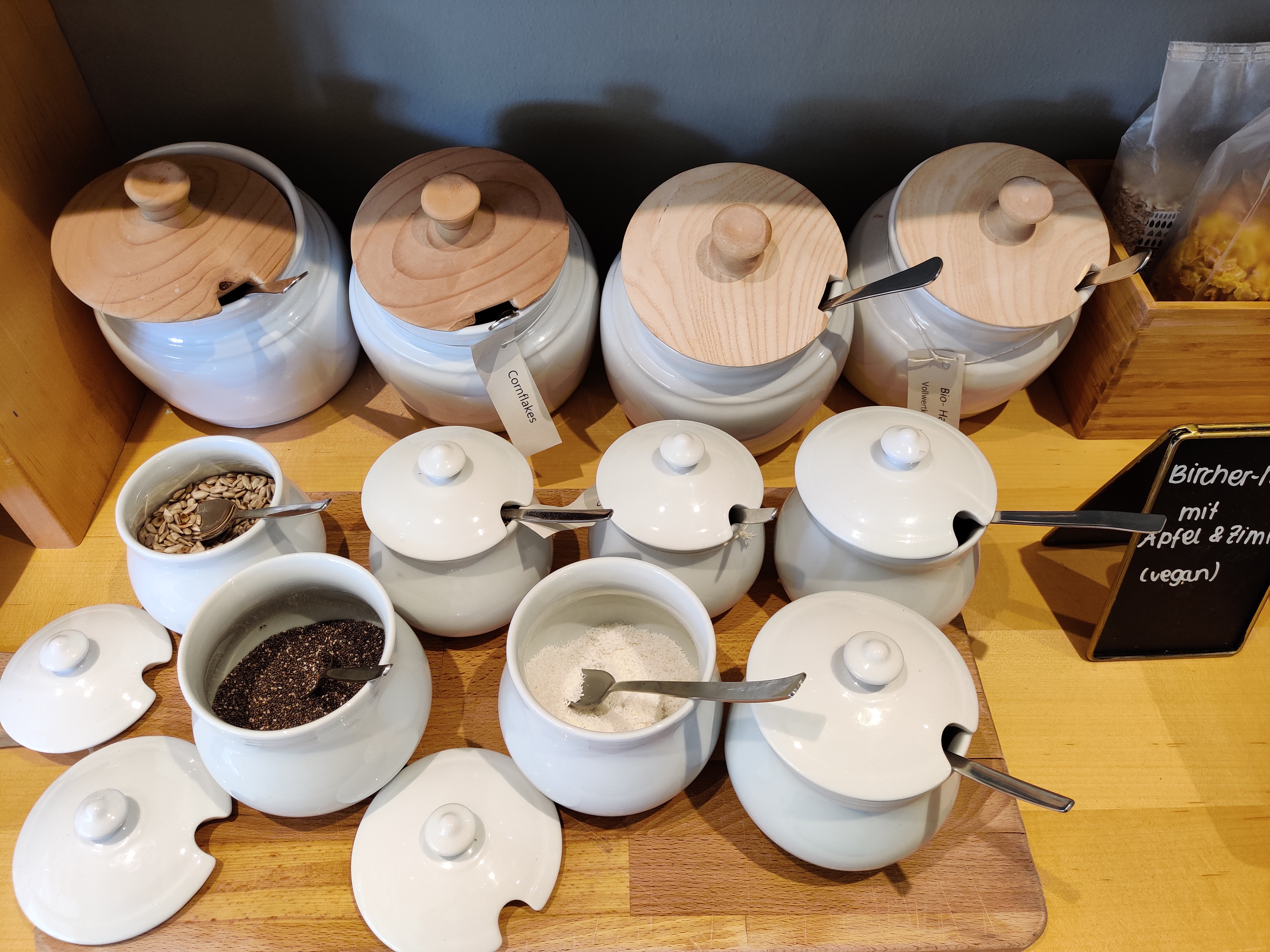 Un plauso va alla prima colazione, è un piacere iniziare così la giornata! Tutto sano, di alta qualità, preparati con pregiati prodotti, bio e regionali. Dalle 7.30 alle 11.30 (domenica fino alle 12.00) con tante prelibatezze, non manca la varietà di cui vi parlo sempre: frumento, riso, orzo, farro, segale, avena, mais – ogni giorno un cereale diverso e un tema speciale. Ho provato il Golden milk per la prima volta: con il loro latte di avena fatto in casa, ottimo! Anche il succo di mela e le marmellate sono fatti in casa, direttamente dal loro frutteto!
